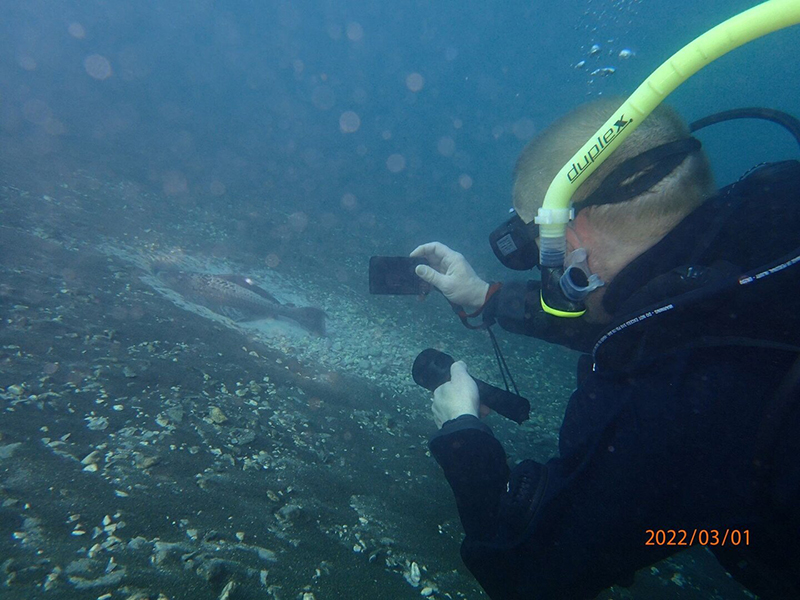 A 2022. március 11-én, 18-án és május 4-én végrehajtott búvármerülések során a faj több kifejlett egyedét is sikerült videófelvételeken megörökíteni 8-14 méteres mélységben a forráskürtő nyugati sziklafalának üregeiben, valamint korábbi fészeküreget is sikerült találni.