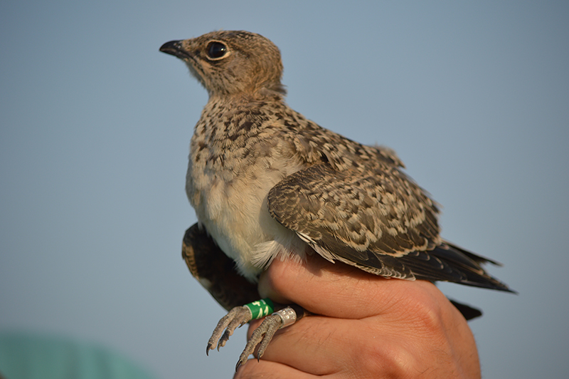 Színes gyűrűvel jelölt fiatal székicsér – az így egyedileg azonosítható madaraknál a későbbi megfigyelések fontos kérdésekre adhatnak választ. Fotó: Kiss Ádám